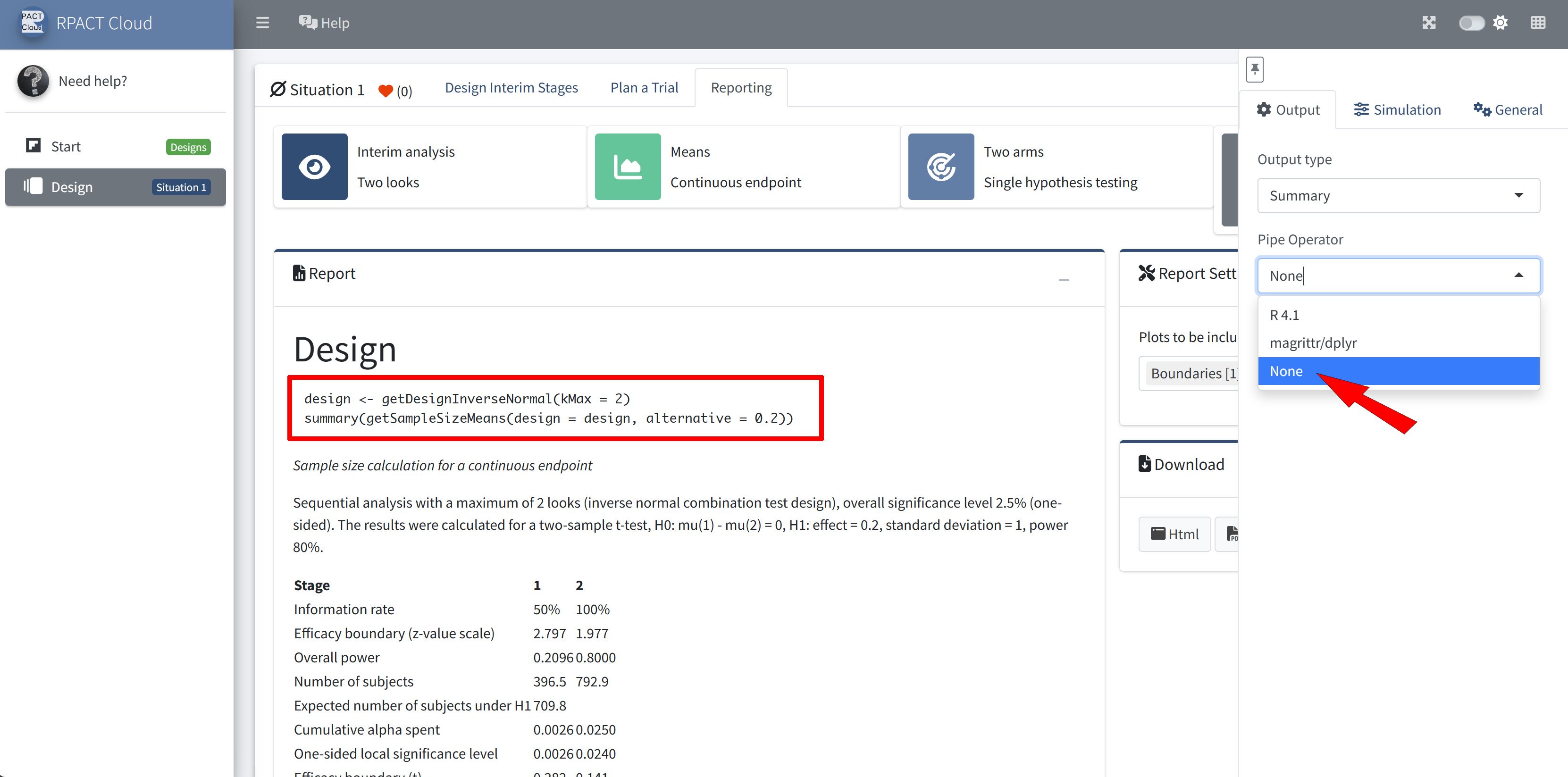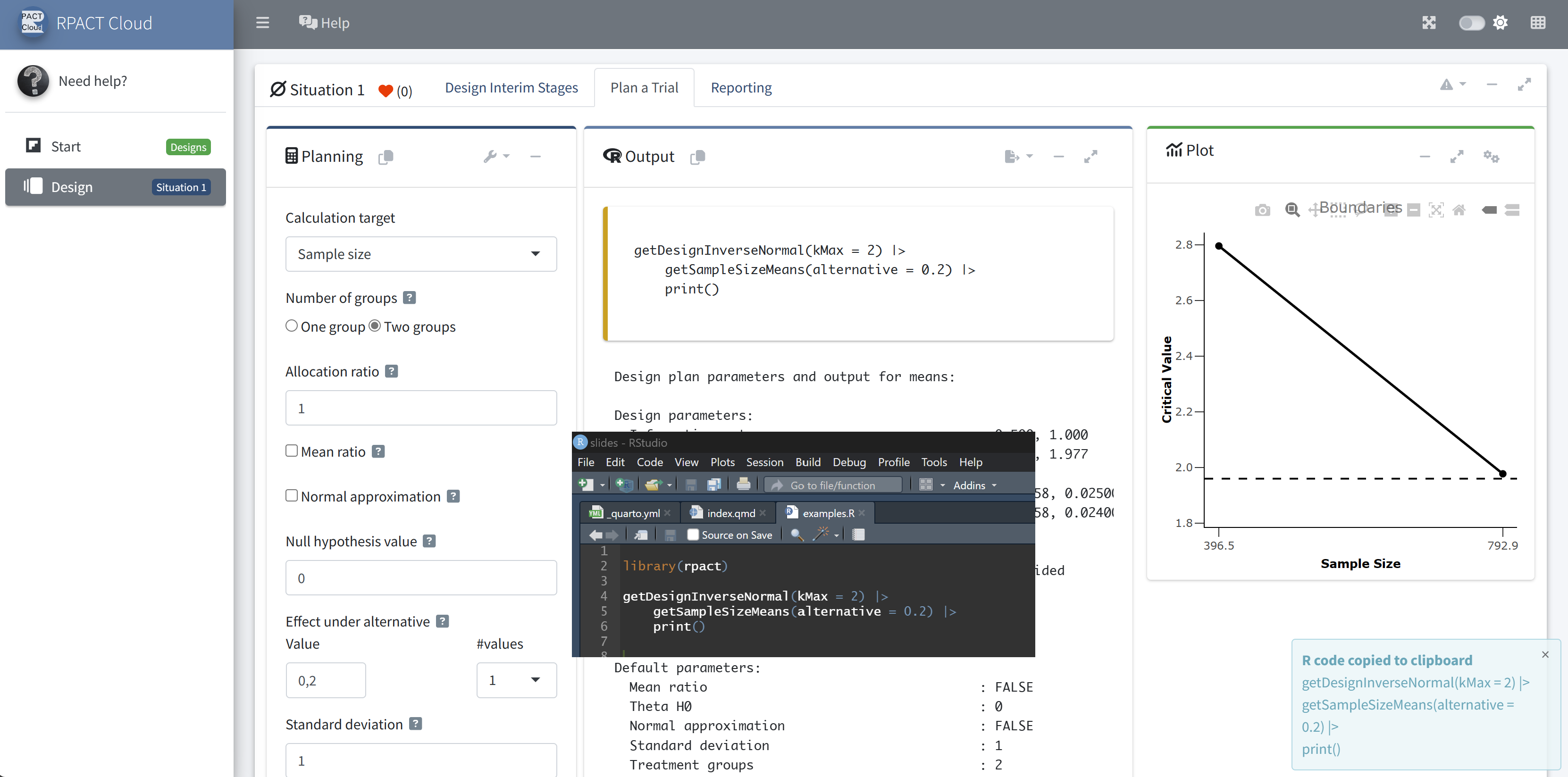 Example: In a practical we answer specific questions with help of RPACT Cloud