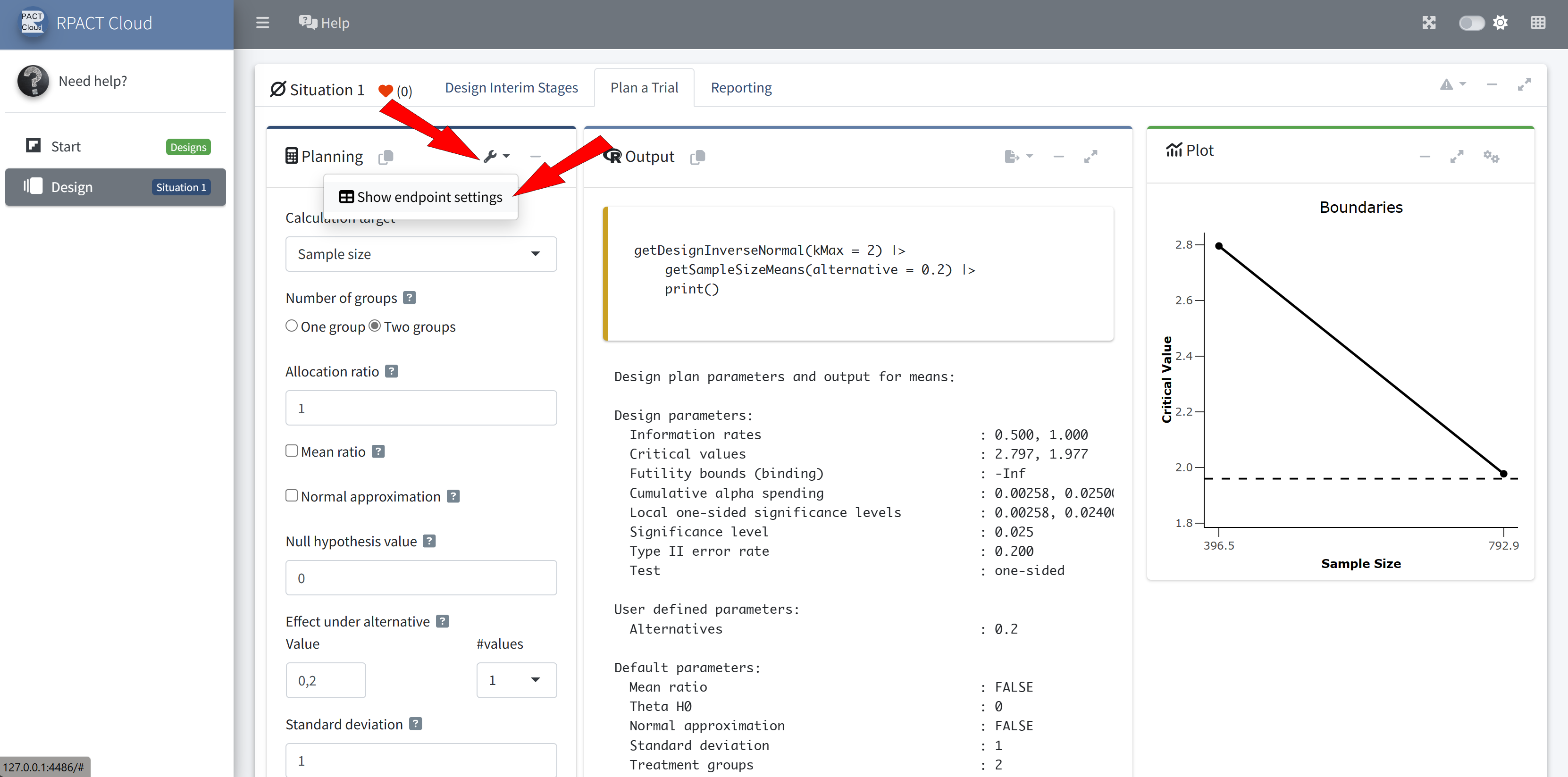 Example: In a practical we answer specific questions with help of RPACT Cloud